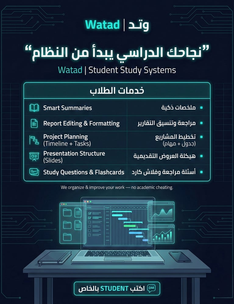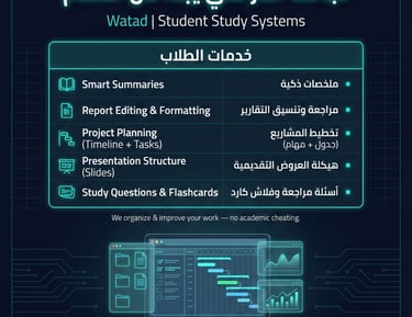 Their AI-driven academic support made exam prep so much easier, clear and well-structured. | الدعم الأكاديمي المدعوم بالذكاء الاصطناعي كان منظم وسهّل علينا التحضير للامتحانات.