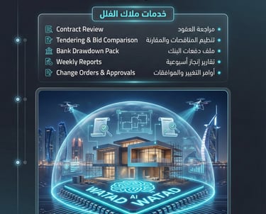 Watad’s project management transformed our villa build, seamless and transparent every step. | حسنات وتد في إدارة المشروع بدّلت تجربتنا، كل خطوة كانت واضحة وسلسة.
